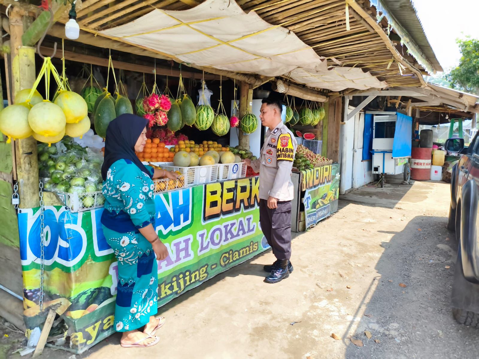 Sambangi Pedagang Buah, Bhabinkamtibmas Polsek Cikijing Sampaikan Imbauan Kamtibmas