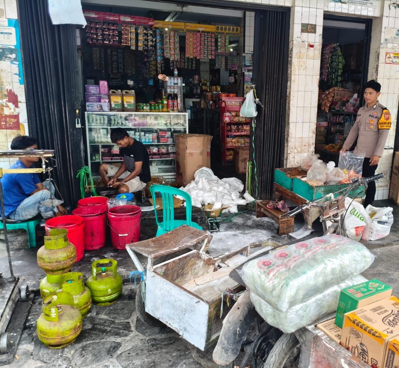 Sambangi Toko Sembako, Bhabinkamtibmas Polsek Cikijing Cek Ketersedian Bahan Pokok