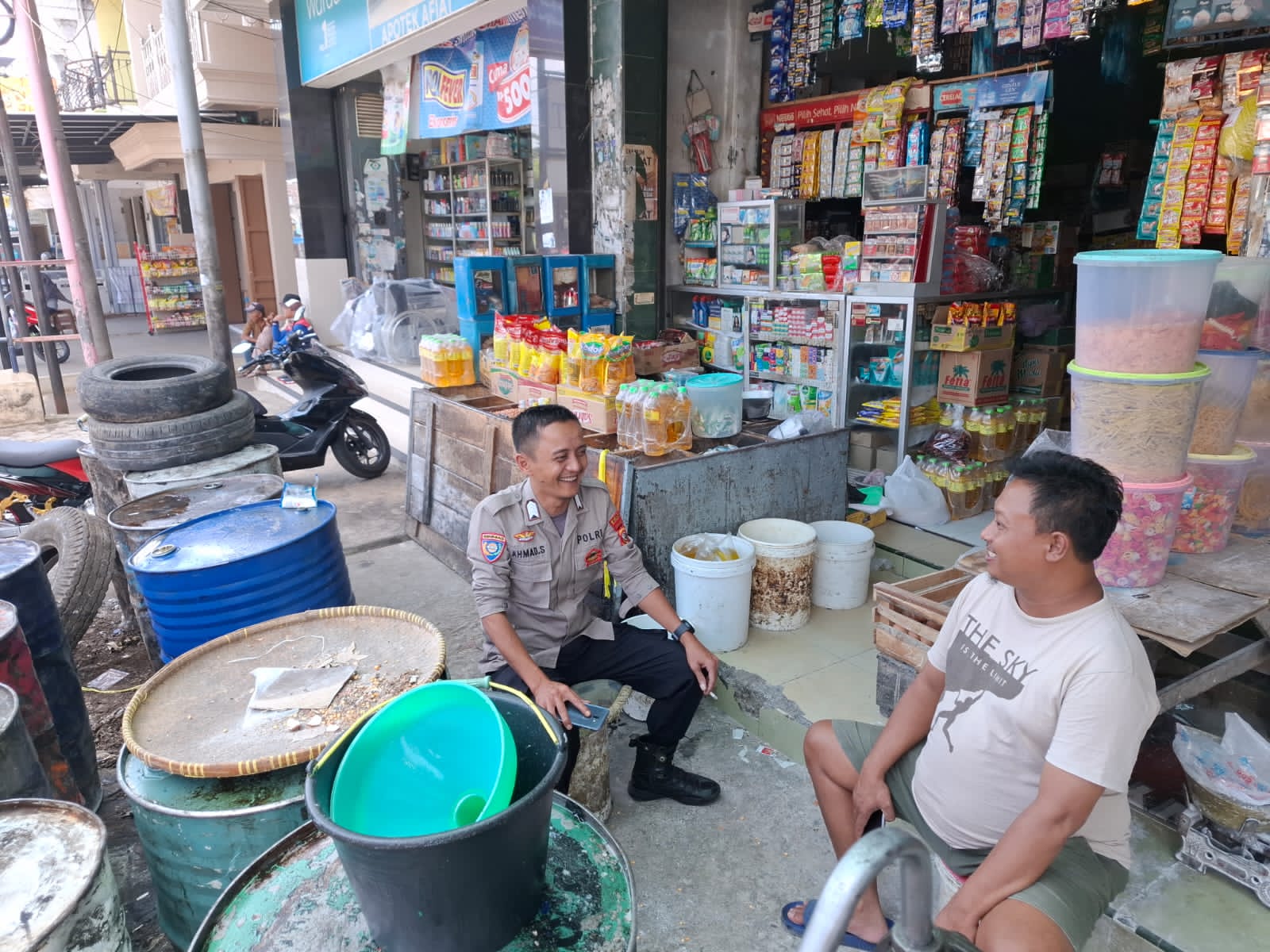 Sambangi Toko Sembako, Bhabinkamtibmas Polsek Cikijing Cek Ketersedian Bahan Pokok