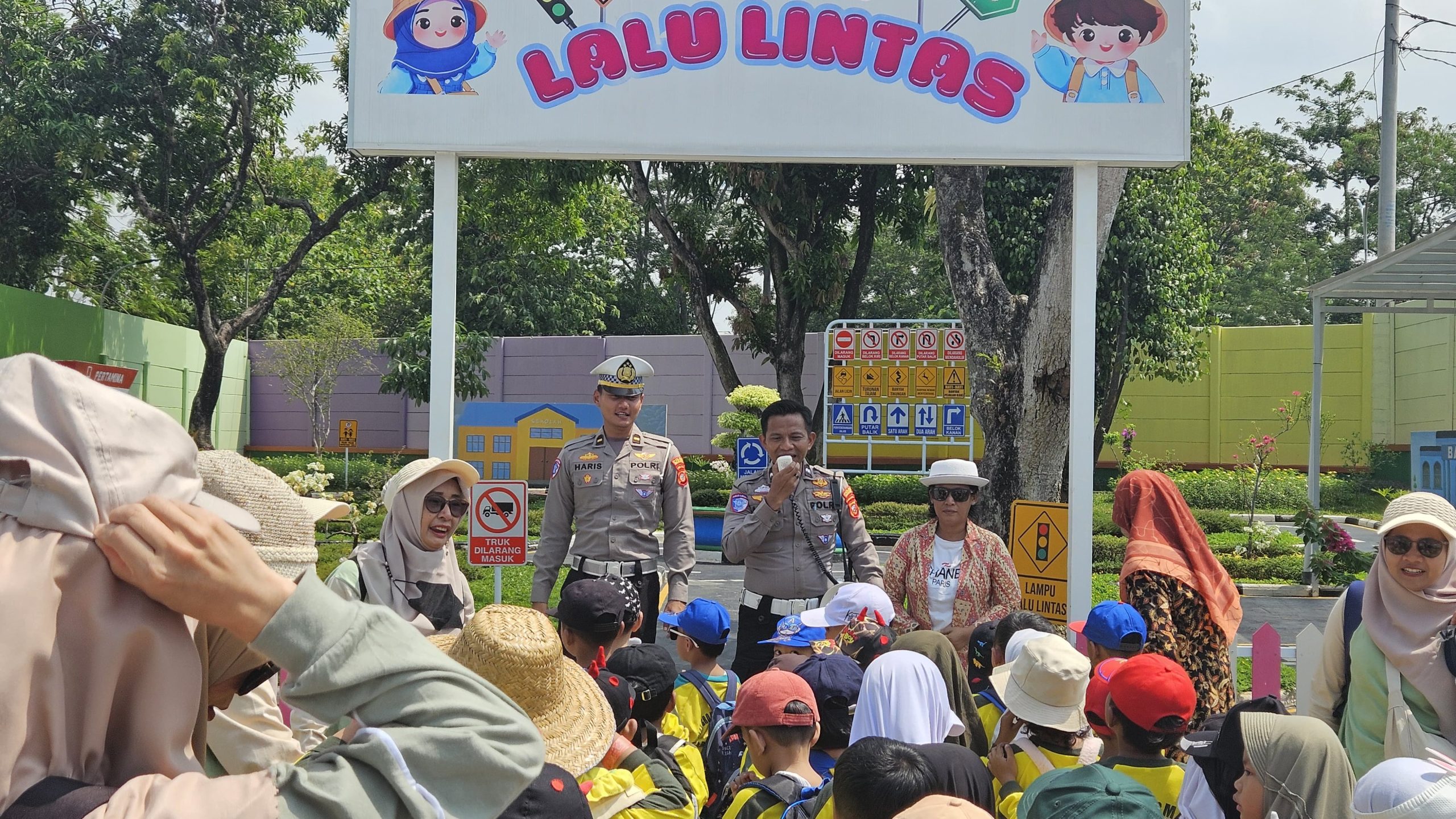 Tidak hanya memberikan materi, personel Sat Lantas juga mengajak anak-anak bermain peran menjadi polisi cilik yang mengatur lalu lintas, sebagai bentuk simulasi yang menyenangkan namun edukatif.