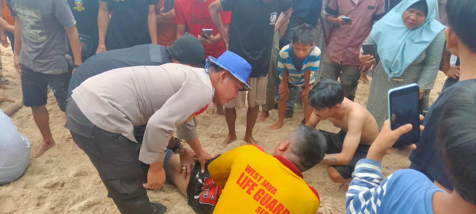 Setelah berhasil di evakuasi ke bibir pantai, ketiga korban mendapatkan pertolongan pertama berupa memompa dada dan memberikan nafas buatan oleh anggota Sat Polairud Polres Garut.