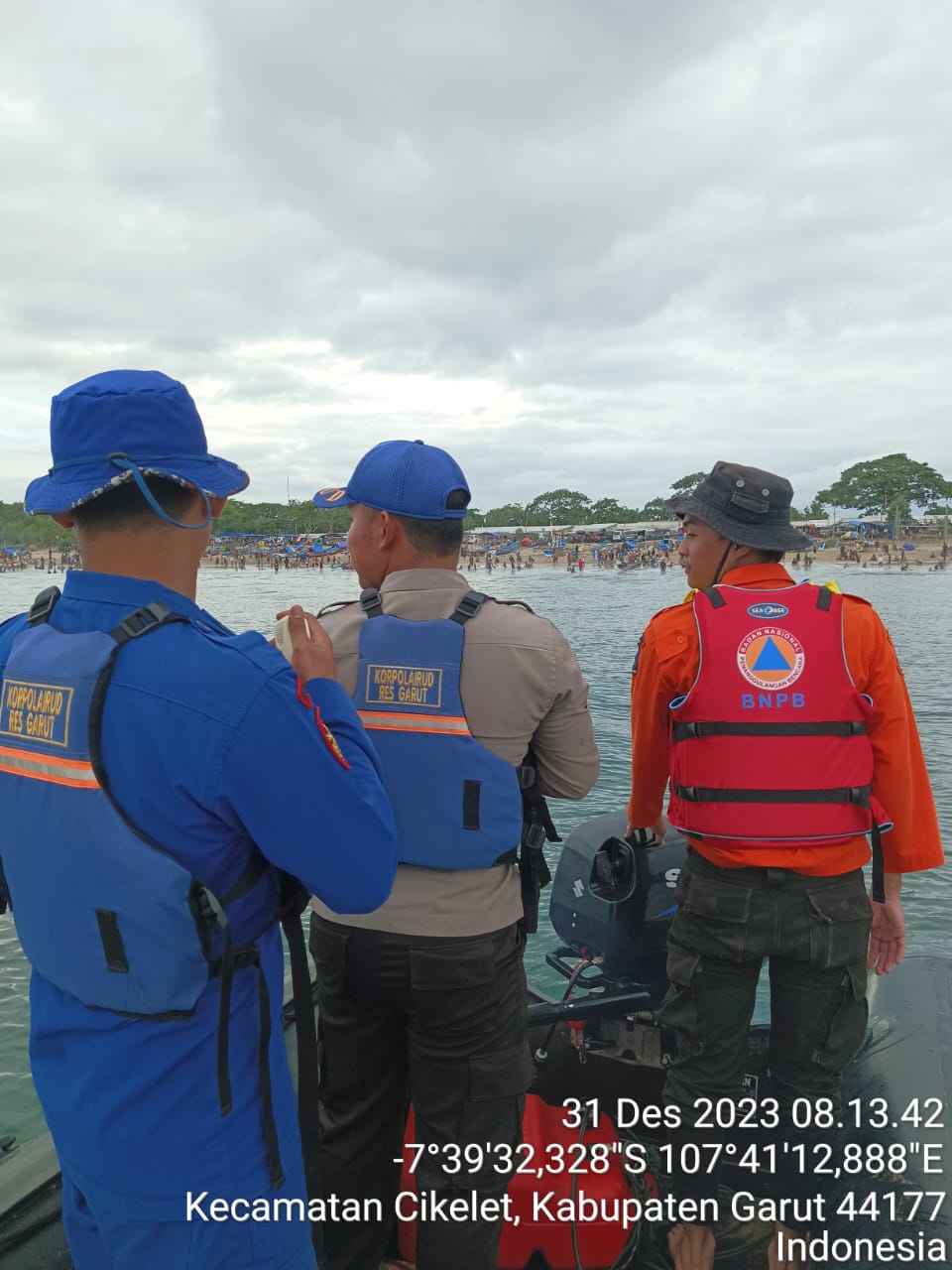 Eksposelensa.com | Garut – Dalam rangka pelaksanaan Operasi Lilin Lodaya 2023-2024 pengamanan Natal 2023 dan tahun baru 2024, Sat Polairud Polres Garut melakukan patroli perairan di wilayah obyek wisata air pantai selatan Kabupaten Garut. Minggu (31/12/2023).