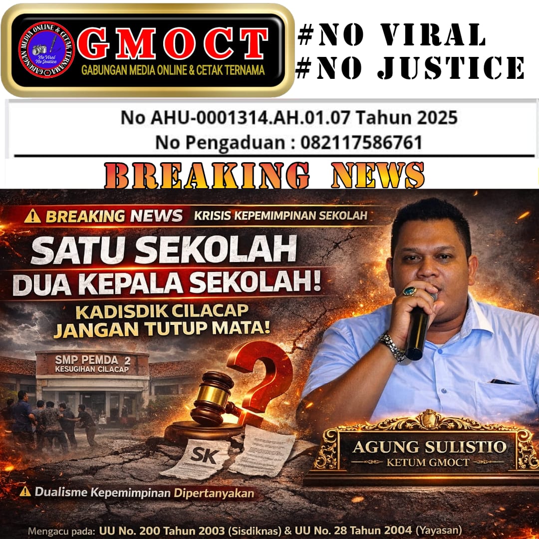 Satu Sekolah Dua Kepala Sekolah: GMOCT Desak Kadisdik Cilacap Tegakkan Kepastian Hukum, Jangan Biarkan Marwah Pendidikan Tercoreng