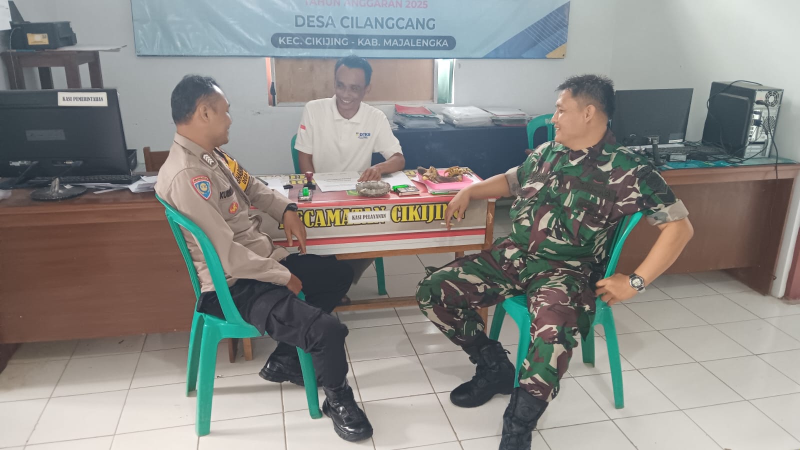 Eksposelensa.com – Majalengka – Bhabinkamtibmas Polsek Cikijing Polres Majalengka Polda Jabar Bripka Kurdiyanto dan Anggota Koramil 1705/Cikijing menyambangi Kantor Desa Cilangcang, Kecamatan Cikijing, Kabupaten Majalengka, Kamis (24/04/2025).