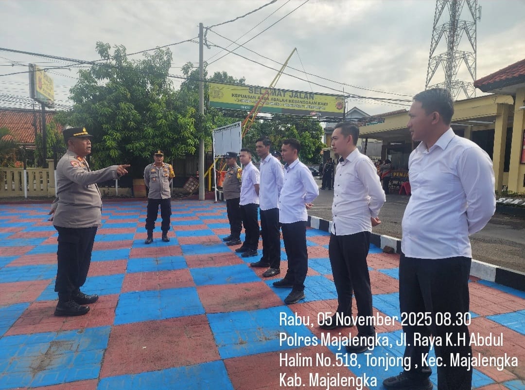 Eksposelensa.com – Majalengka – Dalam rangka meningkatkan pemahaman serta optimalisasi pelaporan kinerja anggota Polri, Seksi Pengawasan (Siwas) Polres Majalengka melaksanakan kegiatan pembinaan dan arahan kepada Pegawai Negeri pada Polri (PNPP) terkait penerapan Sistem Pengendalian Pengawasan dan Pelaporan (SP4LAPOR). Kegiatan tersebut dipimpin langsung oleh Kasiwas Polres Majalengka, AKP Dodo Haryanto, di halaman Polres Majalengka bersama anggota SPKT pada Rabu (5/11/2025).