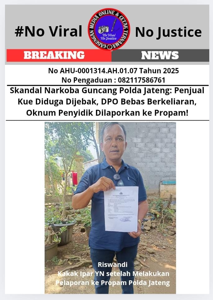 Eksposelensa.com – SEMARANG (GMOCT) – Citra aparat penegak hukum di Jawa Tengah tercoreng. Dugaan kuat adanya praktik penjebakan dan penyimpangan prosedur dalam penanganan kasus narkoba oleh penyidik Polda Jawa Tengah mencuat ke publik, memicu laporan resmi ke Divisi Profesi dan Pengamanan (Propam). Ironisnya, seorang penjual kue kecil ditahan atas tuduhan pengedaran sabu, sementara otak dugaan kejahatan yang telah ditetapkan sebagai Daftar Pencarian Orang (DPO) justru bebas berkeliaran tanpa tersentuh hukum.