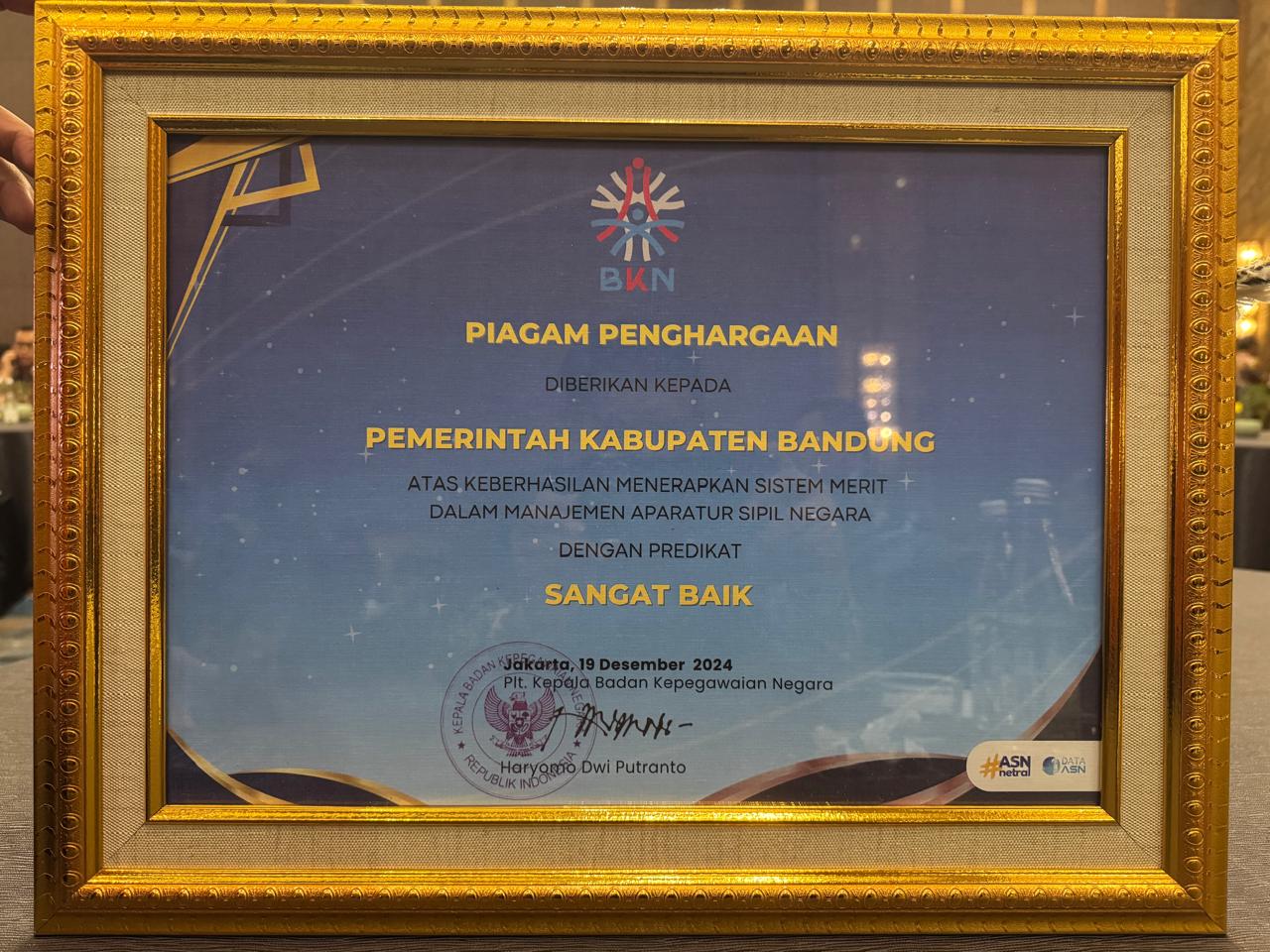 Penghargaan ini, lanjut Kang DS, merupakan bukti nyata komitmen Pemkab Bandung dalam mewujudkan birokrasi yang profesional, akuntabel, dan berorientasi pada pelayanan publik yang optimal.