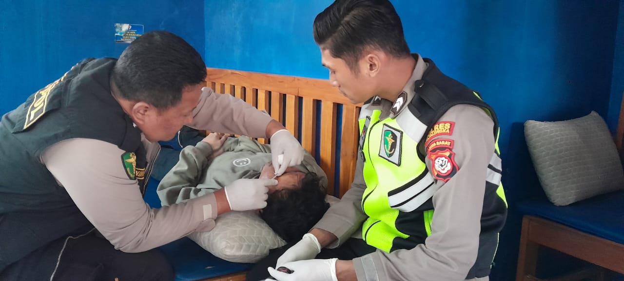 AIPDA Ade Indra selaku Ps.Kasi Dokkes Polres Majalengka beserta Anggota dengan sigap memberikan pertolongan pertama kepada pengguna jalan yang mengalami kecelakaan. Tindakan medis yang diberikan meliputi pemeriksaan tekanan darah dan perawatan luka lecet pada korban.