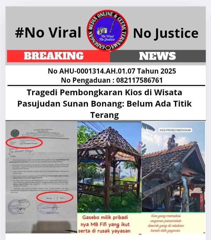 Eksposelensa.com – Rembang (GMOCT) – Lebih dari sebulan berlalu sejak pembongkaran kios milik Fifi di kawasan wisata Pasujudan Sunan Bonang, Rembang, namun belum ada titik penyelesaian antara Fifi dan pihak Yayasan Pasujudan Sunan Bonang. Kios yang disewa Fifi, beserta gazebo, barang dagangan, barang pecah belah, dan meteran PLN miliknya, dirusak oleh pihak yayasan.