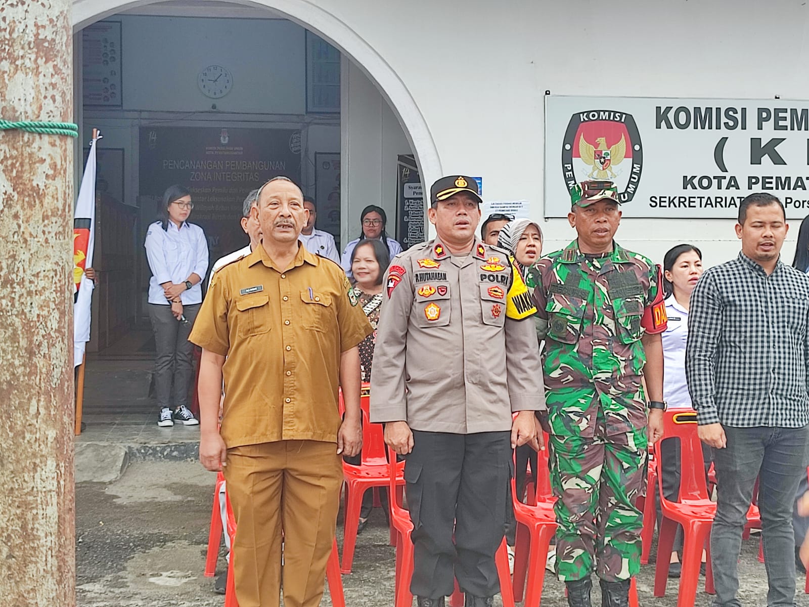 Kemudian Kabag Ops KOMPOL TENANG KRISNA PURBA, SE., S.I.K., MM, KBO Sat Samapta IPTU Pitra Jaya SP, SH, Kanit Turjawali Sat Samapta IPDA Vernando P. Sinaga, Panwascam, Kasubsi Intel Kejaksaan Pematangsiantar Lamhot E. Siburian SH serta Danramil 03 Siantar Selatan KAPTEN INF. Teguh Sugiono./Humas P Siantar. (SE.Rento.S)