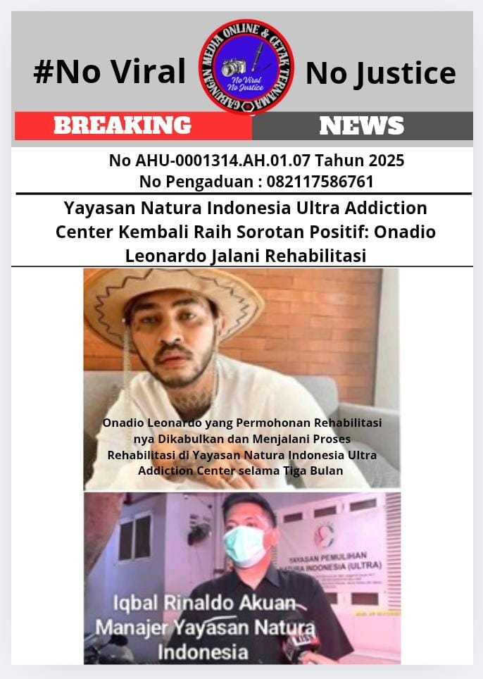 Yayasan Natura Indonesia Ultra Addiction Center Kembali Raih Sorotan Positif: Onadio Leonardo Jalani Rehabilitasi